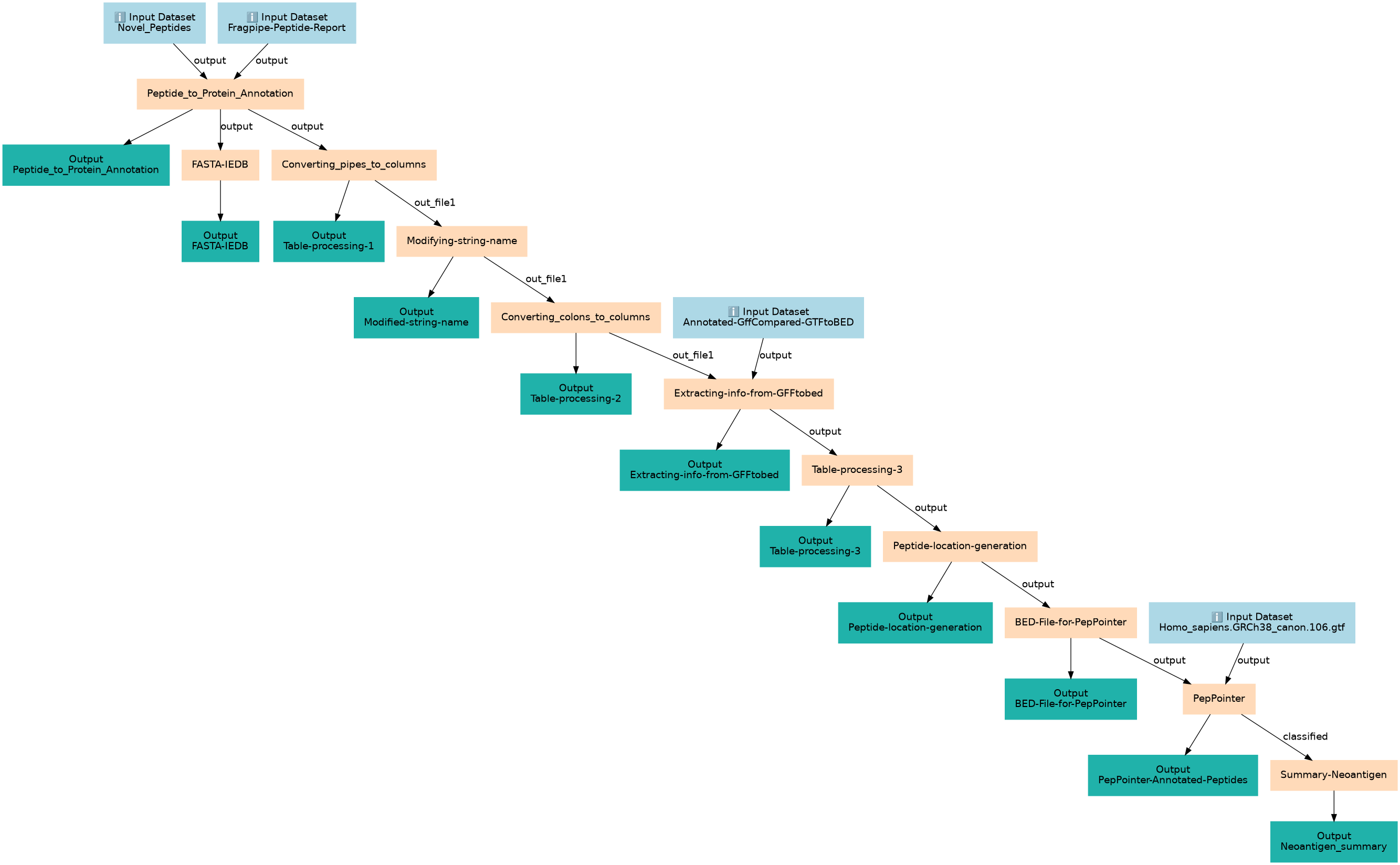 | 4 | Peptide_to_Protein_Annotation | Extracting the information from Fragpipe for the Novel peptides toolshed.g2.bx.psu.edu/repos/iuc/query_tabular/query_tabular/3.3.2 |